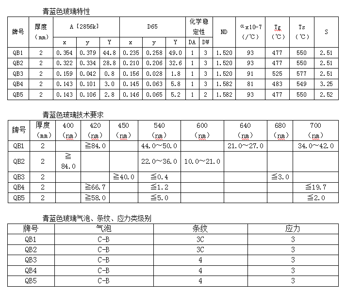 青藍色玻璃——牌號:QB1/QB2/QB3/QB4/QB5