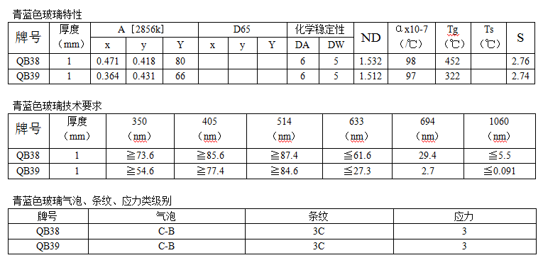 青藍色玻璃——牌號:QB38/QB39