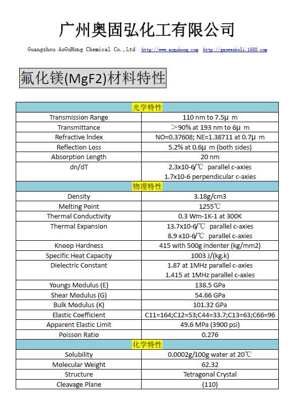 氟化鎂晶體 英文名稱:Magnesium Fluoride 化學式:MgF2