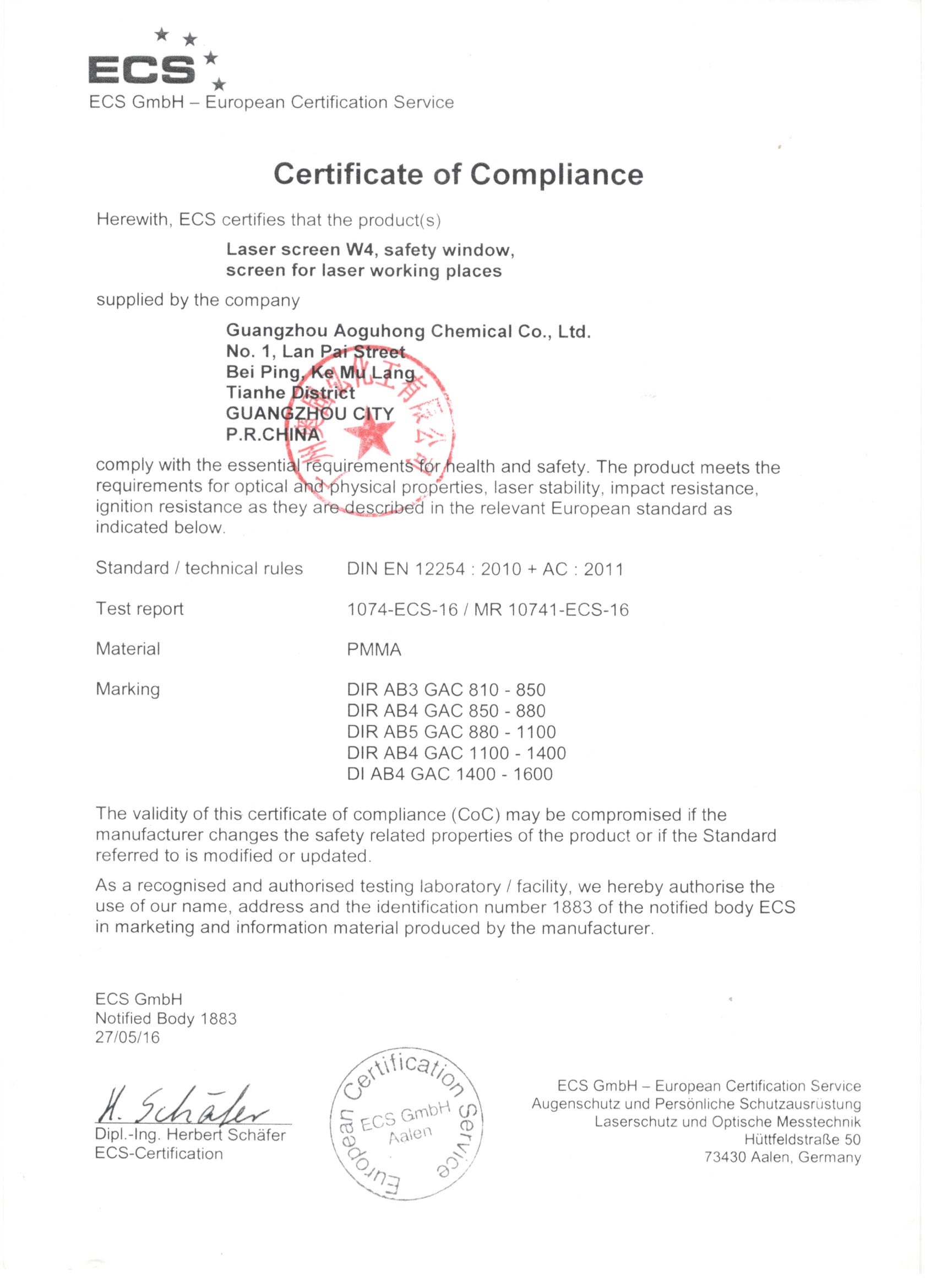 本系列激光防護窗(PMMA)選用國際優質原材料,并采用歐洲CE和美國ANSI標準,針對不同波長加入不同的吸收劑制造而成;有效吸收各種不同的有害光譜,有吸收紫外短波段的光,也有吸收紅外長波段的光;對單波長1064,532以及倍頻532/1064和三倍頻266/532/1064均能做到防護,其安全性符合歐洲標準協會標準。