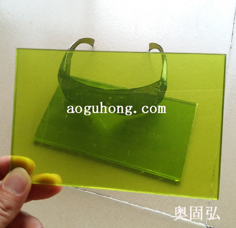 W3 光密度(OD):4+ 防護波長:850—1080nm 黃綠色亞克力T=5mm 可見光 VLT=69%