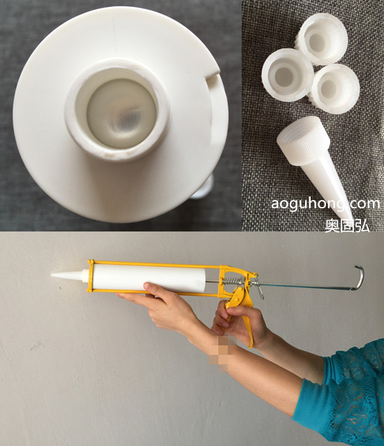 2、用刀片削開前部尖端部分,套上尖嘴,用擠壓槍將膠液擠到已清理干凈的表面,使之分布均勻,將被粘面合攏固定即可。